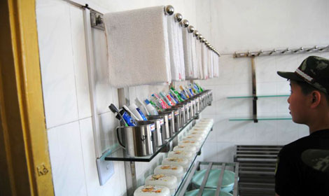 教唱军歌 辅导员指导学员们行衣物清洗晾晒,自己的事情自己动手做 |